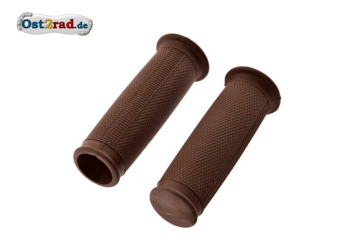 Levá a pravá ručky, grip pro moto IWL AWO BK350 EMW BMW. Ručky jsou rovné. Celková délka cca. 12cm. Ručka plynu má vnitřní průměr 24-26mm a je otevřená. Pevná ručka má vnitřní průměr 21-23mm a je z vnější strany uzavřená. V případě potřeby je možné levou ručku zlehka otevřít. Použítelné pro většinu veteránů.