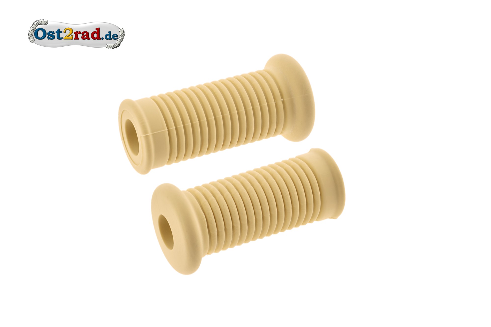 2 ks gumových zadních stupaček spolujezdce, krémová béžová barva. Pro moto SIMSON S50, S51, S70, S53, S83, KR51/1, KR51/2 a MZ ES175/0, ES175/1, ES250/0, ES250/1, TS250/0, TS250/1, ETS250, ETZ125, ETZ150, ETZ250, ETZ251 a ETZ301. I prodalší veterány.