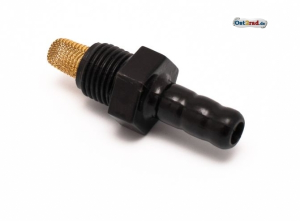 Násadka pro napojení benzínové hadičky 5mm na palivový kohout EHR passend pro motocykly SIMSON SR1, SR2, Spatz SR4-1, Star SR4-2, Sperber SR4-3, Habicht SR4-4, KR50, Schwalbe KR51/1, KR51/2, S50, S51, SR50, SR80 a MZ BK350, ES 125, ES 150, ES 175/1, ES 250/1, ETS 125, ETS 150, ETS 250, TS 125, TS 150, TS 250/0, TS 250/1, ETZ 125, ETZ 150, ETZ 250, ETZ 251 a ETZ 301. Také pro IWL Troll. Pro provedení se sítkem. Průměr hadičky 6 mm.