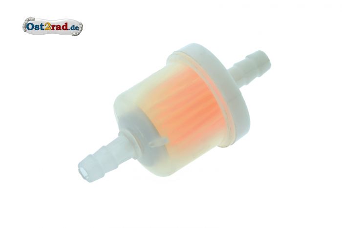 Benzinový filtr pro montáž do benzinové hadičky o průměru 5-6 mm. Tělo a filtrační vložka plast. Pro moto MZ RT125, ES125, ES150, ES175/0, ES250/0, ES175/1, ES250/1, ES300, ES175/2, ES250/2, ETS125, ETS150, ETS250, TS125, TS150, TS250/0, TS250/1, ETZ125, ETZ150, ETZ250, ETZ251, S50, S51, S70, SR50, SR80, S53, S83, Schwalbe KR51/1, KR5/2, SR4-1 Spatz, SR4-2 Star, SR4-3 Sperber, SR4-4 Habicht, SR1, SR2 a JAWA a ČZ.