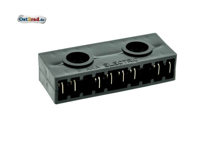 Konektor, kabelová spojka 8800.1/1 pro moto MZ ETZ 125, ETZ 150, ETZ 250 a ETZ 251. Spojka má 3 můstky pro zapjení kabelů. Zapojení: 2x tělo světlometu, 1x pod sedlem.
