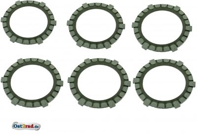 Lamela spojky pro moto MZ  ES125, ES150, ETS125, ETS150, TS125, TS150, ETZ125 a  ETZ150. Dále pro RT125/1, RT125/2, RT125/3. Lamela je ze speciálního plastu. Přesné označení lamely je A6. Dodávka 6 ks. Výroba SRN.