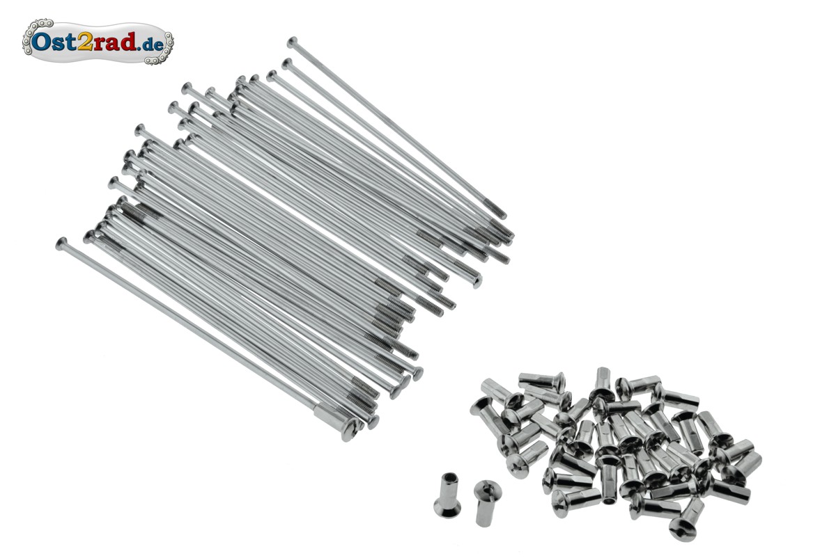 Kompletní výplet M4 funkční délka 148mm (celková délka je 2-3mm větší). Původní díl bez koroze. Speciální drát, měď, nikl, chrom. Niple z mosazi, pochromované. V dodávce 36 ks drátů na niplí.Pro moto MZ ráfek 18'' 36 - děl.