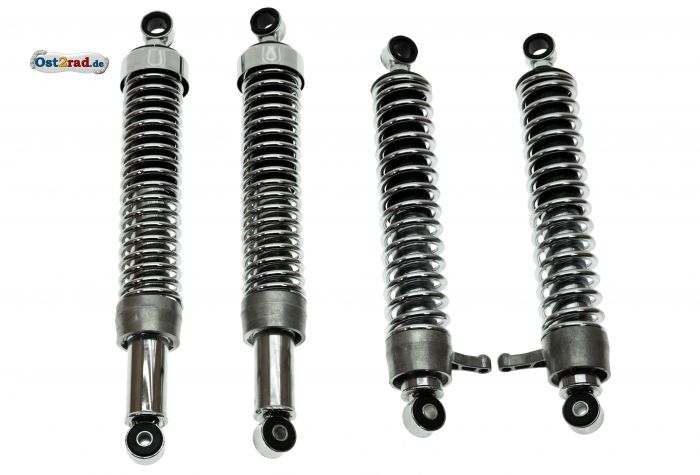 2 ks přední a 2 ks zadní pružicí a tlumicí jednotky pro moto MZ ES125 a ES150. Německá kvalita. Rozteč od předních tlumičů 400mm, zadních tlumičů 360mm.