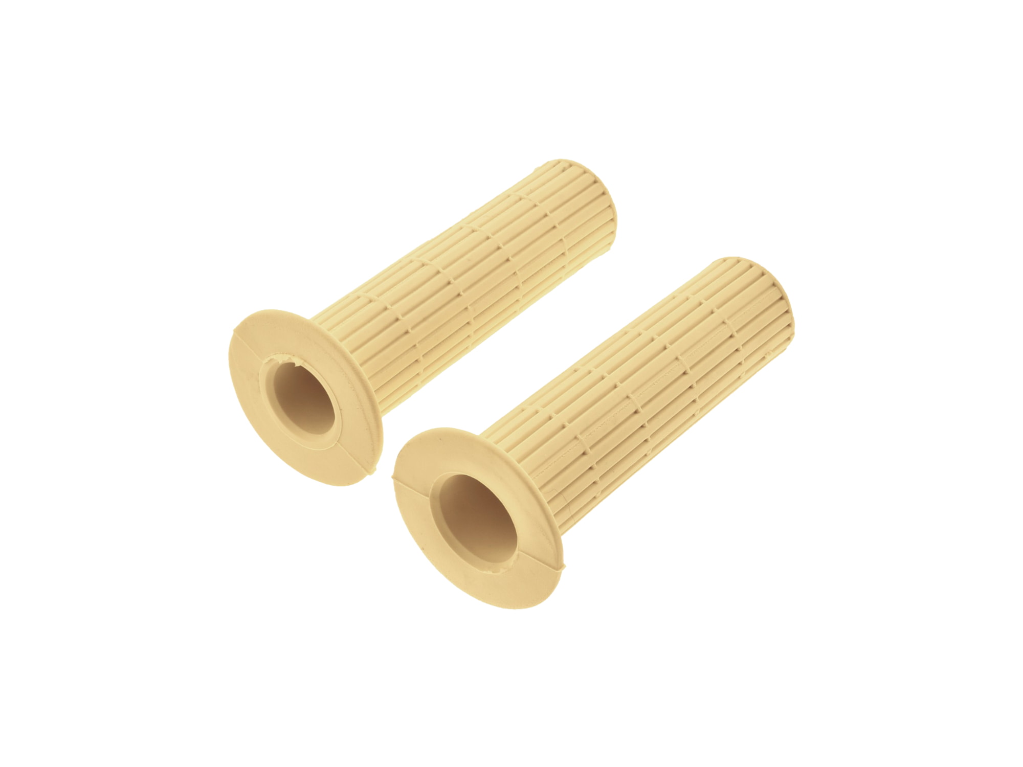 2 ks rukojetí původního origináílního tvaru Simson S50 a S51. Podélně výhované, obě ručky na koncích uzavřené. Barva: béžová, slonovina. Otočná ručka plynu a pevná ručka.