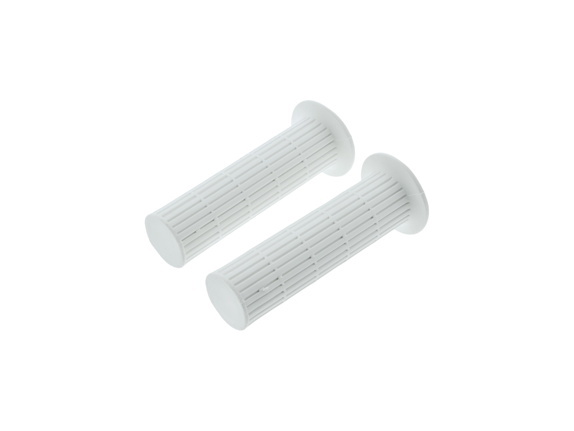 2 ks rukojetí původního origináílního tvaru Simson S50 a S51. Podélně výhované, obě ručky na koncích uzavřené. Barva: bílá. Otočná ručka plynu a pevná ručka.