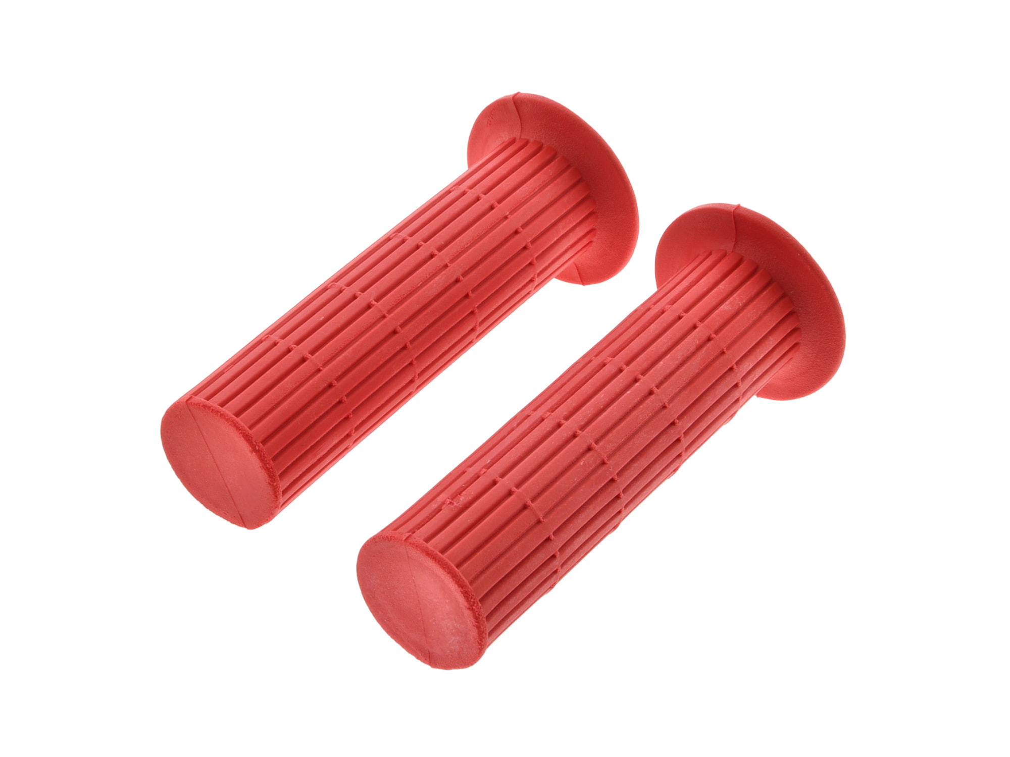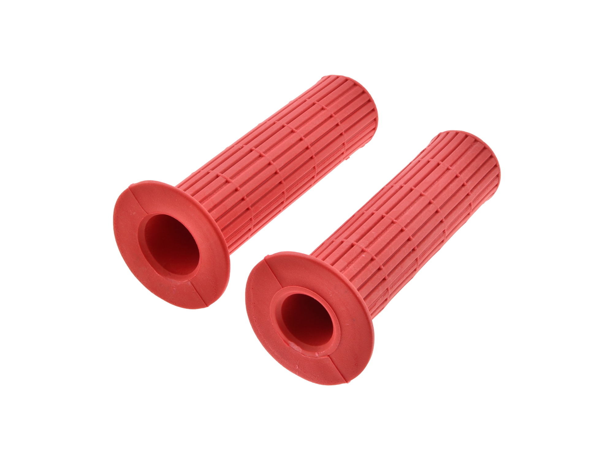 2 ks rukojetí původního origináílního tvaru Simson S50 a S51. Podélně výhované, obě ručky na koncích uzavřené. Barva: dopravní červená. Otočná ručka plynu a pevná ručka.
