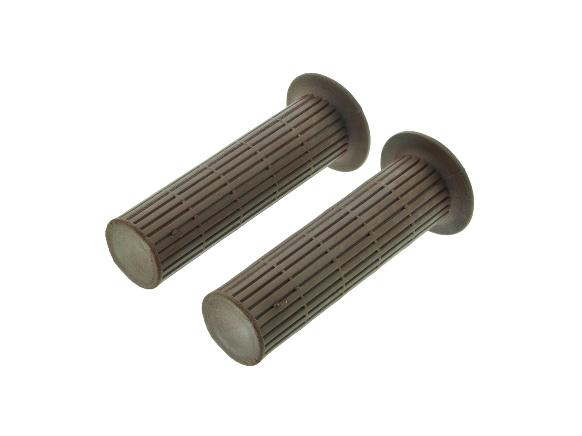 2 ks rukojetí původního origináílního tvaru Simson S50 a S51. Podélně výhované, obě ručky na koncích uzavřené. Barva: hnědá, rezavá. Otočná ručka plynu a pevná ručka.