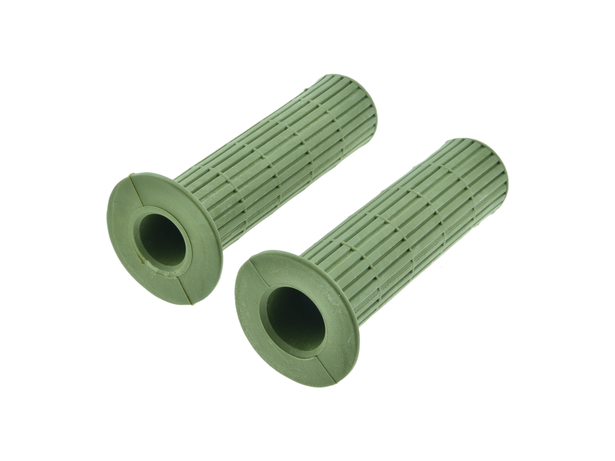 2 ks rukojetí původního origináílního tvaru Simson S50 a S51. Podélně výhované, obě ručky na koncích uzavřené. Barva: olivově zelená, military. Otočná ručka plynu a pevná ručka.