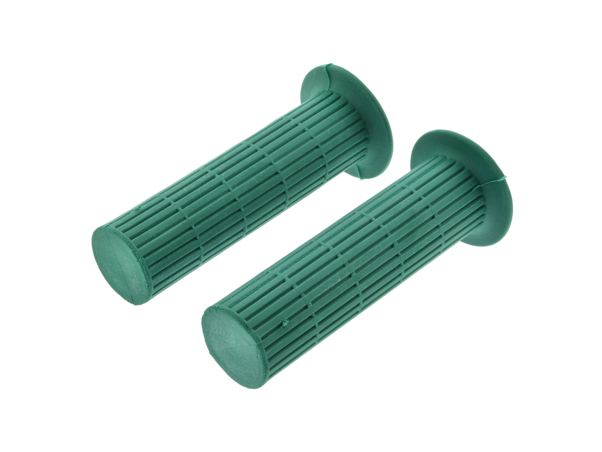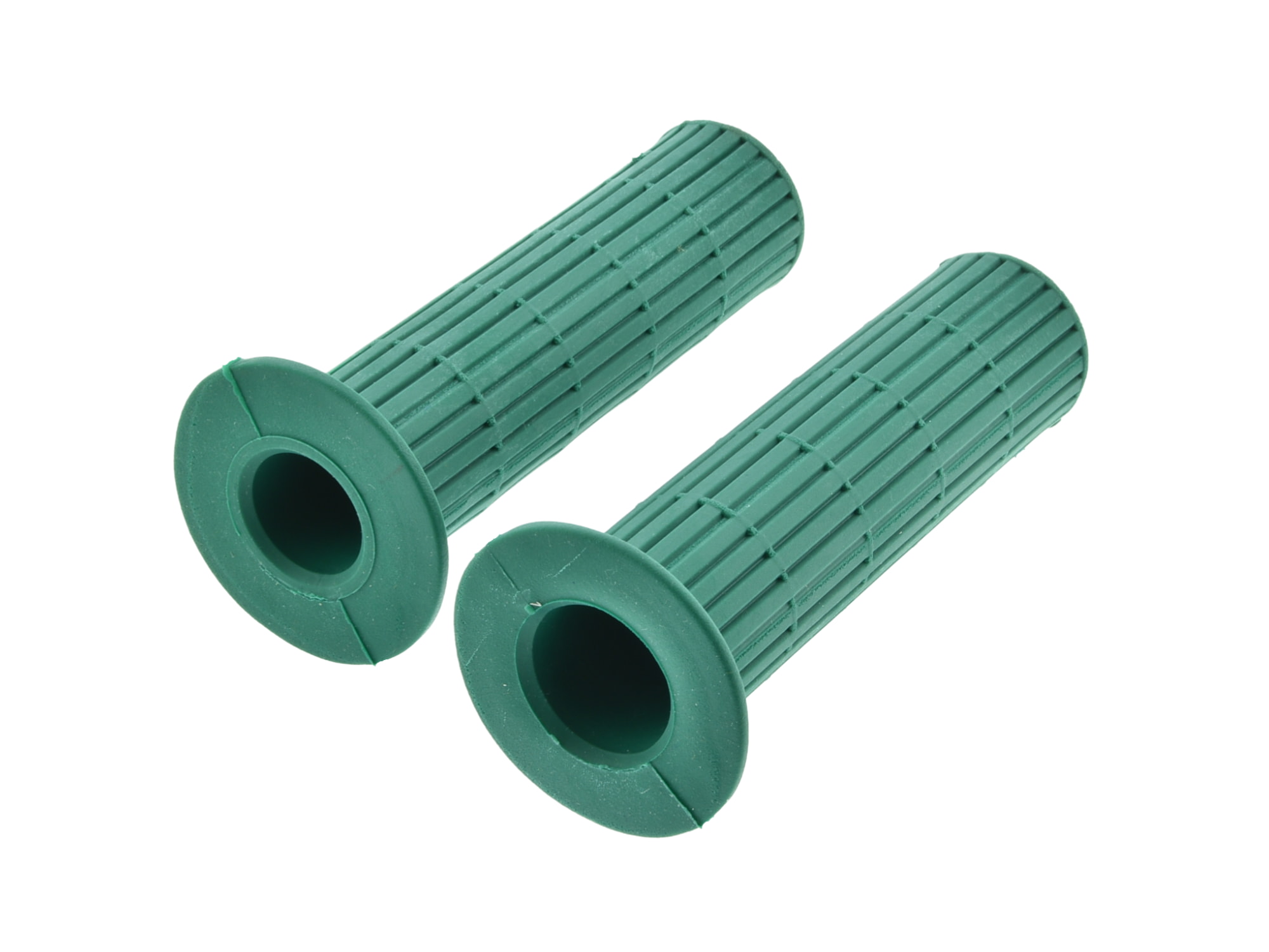 2 ks rukojetí původního origináílního tvaru Simson S50 a S51. Podélně výhované, obě ručky na koncích uzavřené. Barva: tmavě zelená. Otočná ručka plynu a pevná ručka.