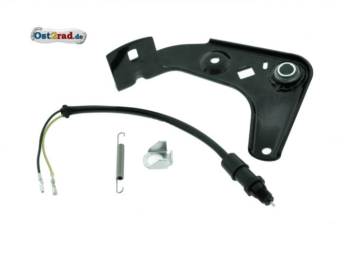 Sada pro přestavbu spínače brzdového světla zadní brzdy SIMSON S51, S70, S53, S83 na vně uložený. Sada obsahuje: levé uložení motoru, pružina, držák, spínač brzdového světla.