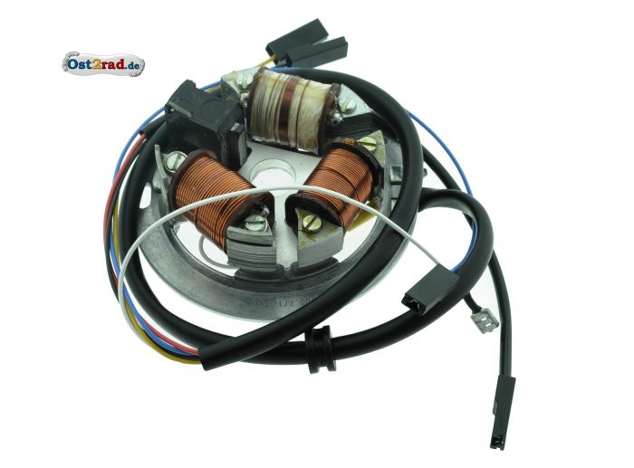 Kompletní osazený stator, základní deska elektronického zapalování se všemi cívkami, přeurušovačem a kabely pro Simson  R50/1, SR80/1C, CE, XG, XC, XGE, XCE.