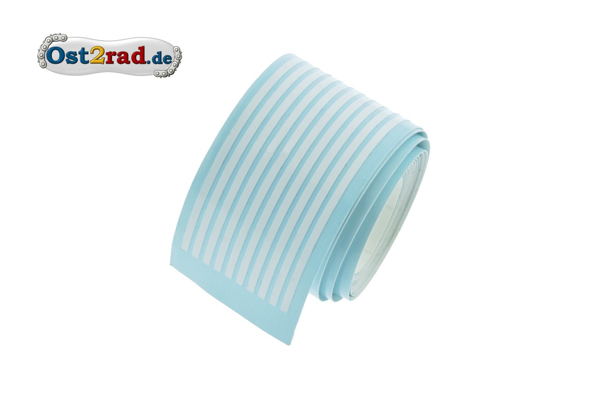 Role samolepících linek samolepek , 10 ks, každý kus je 1,5m dlohý. Celková délka 15m. Linky jsou přelakovatelné, používají se jako samolepky, jednostlivě oddělitelné. Šířka linky je 1,5mm. Vhodné pro nádrže, blatníky, kastlíky a kapotáže.