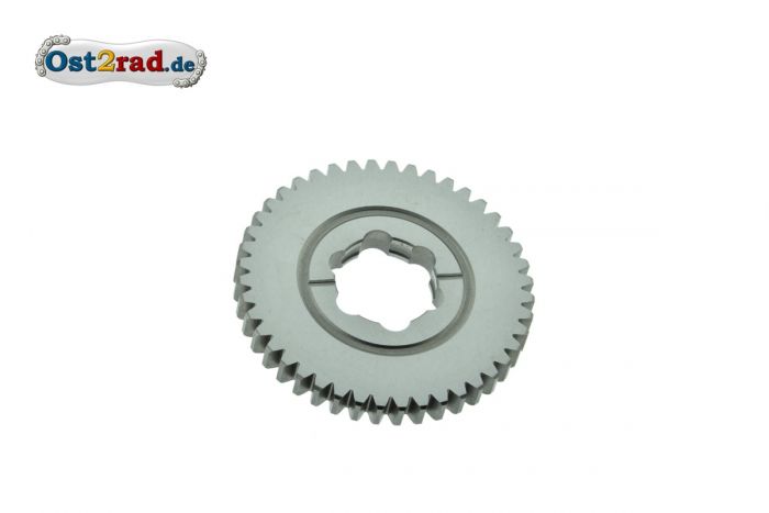 Volné kolo převodovky s 44 zuby pro 1. rychlost 5-ti rychostní převodovky motocyklů SimsonS51, S70, S53, S83, Schwalbe KR51/2, skůtr SR50 a SR80. Pouze pro moto s namontovanou 5-ti rychlostní převodovkou.