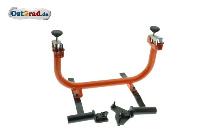 Nářadí, stolní přípravek na opravy motoru. Motor se upevňuje šrouby a je možné o v jedné ose otáček o 360 stupňů a aretovat. Velmi užitečný pomocník pro opravy motorů SIMSON S51.