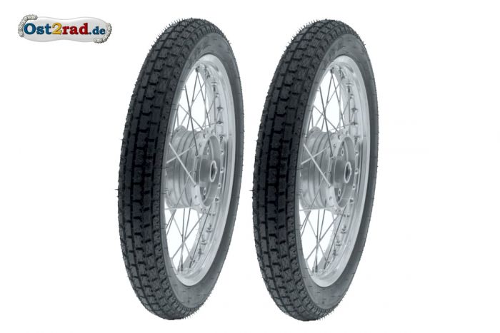 2 ks kompletních kol pro SIMSON s 16 koly. Pro SIMSON Typen Star SR4-2, Sperber SR4-3, Habicht SR4-4, Schwalbe KR51/1, KR51/2, S50, S51, S70. Přední i zadní kolo.