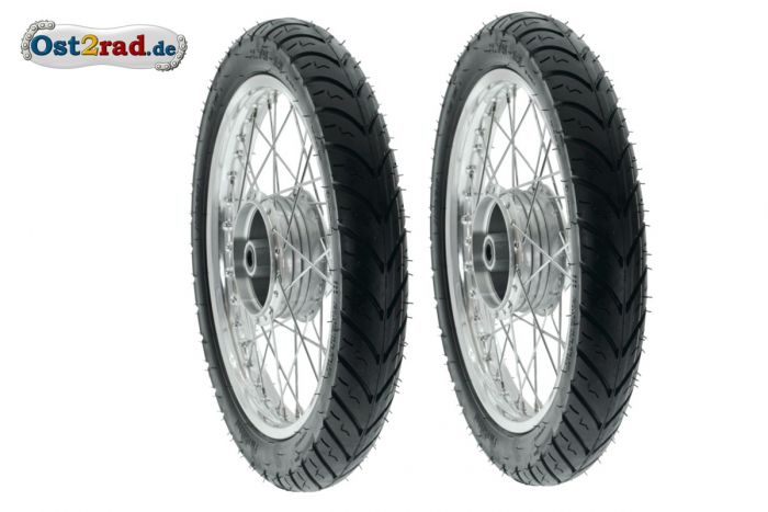 2 ks kompletních kol pro SIMSON s 16 koly. Pro SIMSON Typen Star SR4-2, Sperber SR4-3, Habicht SR4-4, Schwalbe KR51/1, KR51/2, S50, S51, S70. Přední i zadní kolo.