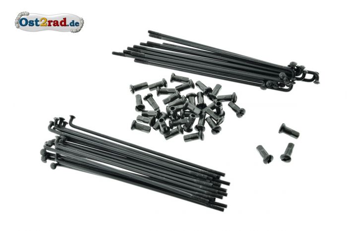 Kompletní sada drátů, výplet 36 špic a 36 niplí M3,5. Ocelové dráty s povrchovou úpravou černá mat. Niple černý zinek. Délka drátů 143,5 mm , dráty ohnuté. Pro přední a zadní kolo motocyklů Simsons 16'' ráfky Simson Spatz, Star, Habicht, Sperber, KR50, KR51/1, KR51/2 Schwalbe, S50, S51. Před objednáním přeměřte původní výplet.
