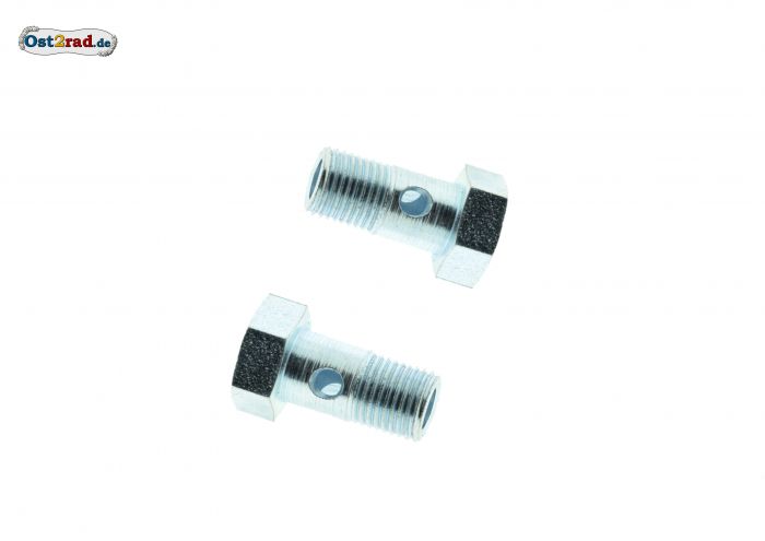 2 ks dutého šroubu pro upevnění brzdového vedení . Pro brzdové vedení s kulatou koncovkou. Šrouby jsou pozink M10x1. Délka 19mm.
