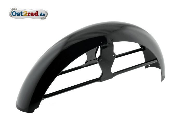 Přední blatník pro moto Simson S50, S51. Starší provedení se vzpěrami. Blatník je ocelový, svařený. Blatník má původní starý tvar a velikost. Je opatřený černou práškovou barvou ve více vrstvách, černé lakování a čirý práškový lak. Velmi kvalitní ochana proti korozi a slané vodě, výroba v SRN.