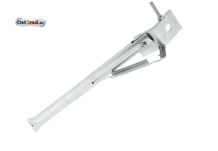 Pozinkovaný stojánek boční , policajt Simson KR51/2, S50, S51, S70, SR50, SR80, S53 a S83 . Montáž na osu zadního kola . Včetně napínáku řetězu. Stojánek se sám zaklápí, s 1 pružinou.