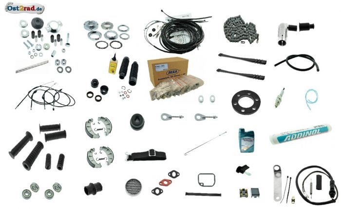 Sada k renovaci moto Simson S51, S51E, S50, Enduro, S70, S61, S53, S83. Obsahuje nezbytné díly pro opětovné zařazení motocyklu do provozu po delší odstávce.
