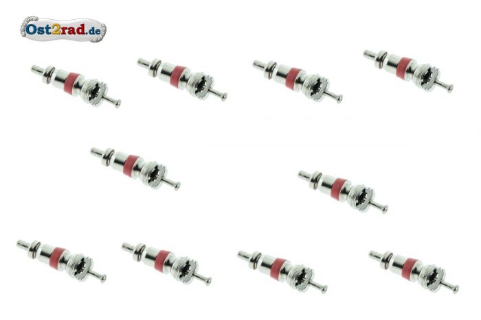 10 ks ventilku pro kola motocykly MZ, SIMSON a další. Vynikající kvalita, zinkový odlitek. Délka ventilku 20mm. Pro motocykly MZ ES 125, ES 150, ES 175/0, ES 175/1, ES 175/2 , ES 250/0, ES 250/1, ES 250/2, ES 300, ETS 125, ETS 150, ETS 250, TS 125, TS 150, TS 250/0, TS 250/1, ETZ 125, ETZ 150, ETZ 250, ETZ 251, ETZ 300, SIMSON S50, S51, S70, S53, S83, SR 50, SR 80, Schwalbe KR 51/1, KR 51/2, Spatz SR4-1, Star SR4-2, Sperber SR4-3, Habicht SR4-4, AWO Sport a AWO Touren.