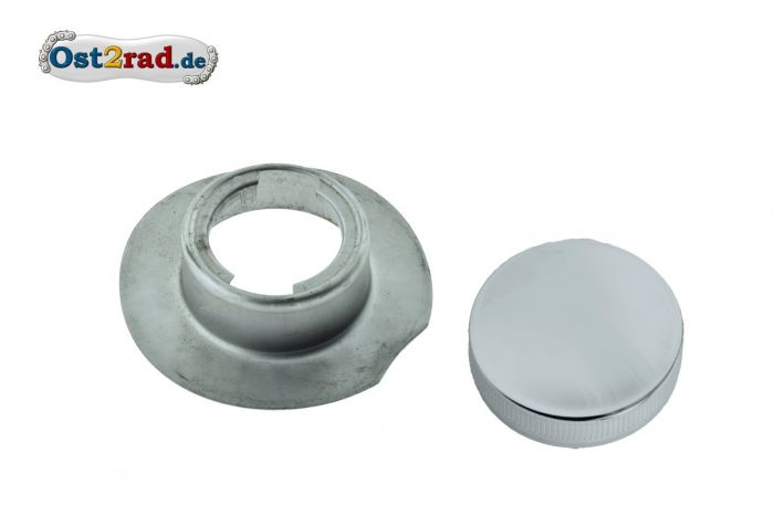Víčko nádrže s navařenou přírubou a těsněním. Pro restaurování veteránů. Průměr víčka cca. 60mm, je vhodné např. pro Simson S50 nebo S51.
