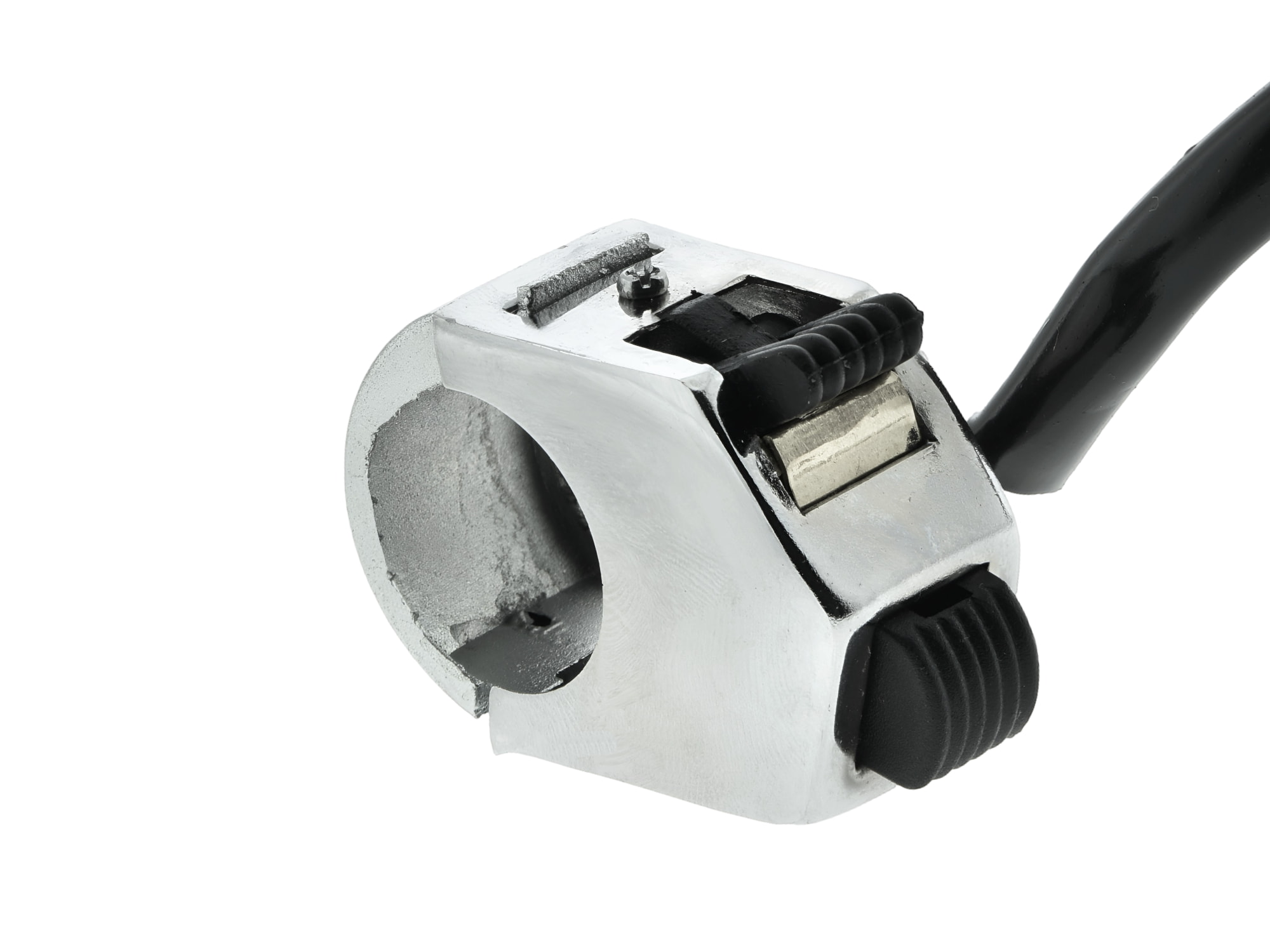 Přepínač dálkového světla s tlačítkem houkačky klaksonu pro Simson SR2 , IWL , RT125 a AWO . S objímkou pro průměr řídítek 21 - 24 mm. Včetně kabelu v ochranné bužírce s průchodkou.