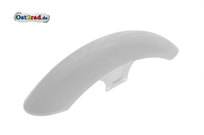 Sportovní blatník pro moto  Simson typů S50, S51 a S53. Sportovní vzhled, kratší než originál.Je svařený, připravený k instalaci, se ohnutou přední hranou proti stříkající vodě a ohnutými stranami. Blatník délky cca. 450mm. Základová barva bílá prášková vícevrstvá, čírý lak. Odolný proti korozi a soli, výroba v SRN!